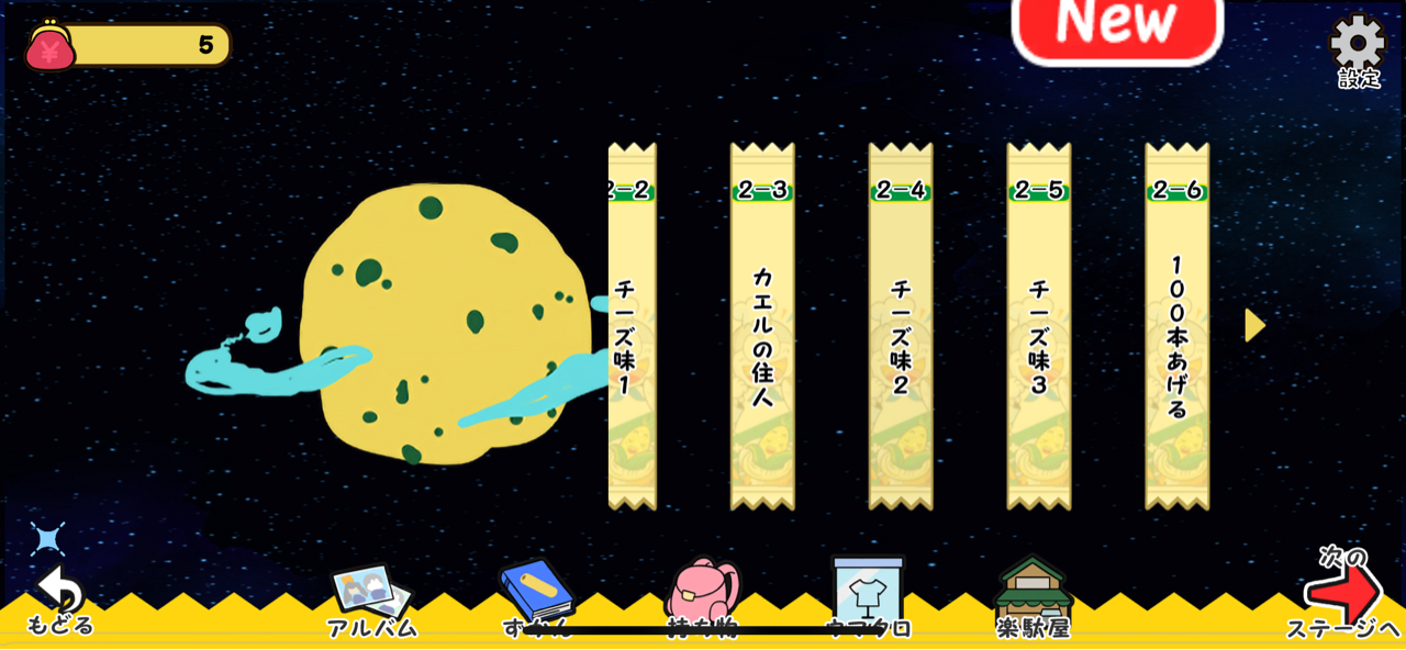 ・ストーリーと再プレイの計2回プレイしたステージの包装うまい棒は復活しない(BIGカツを使えば復活させることは可能)