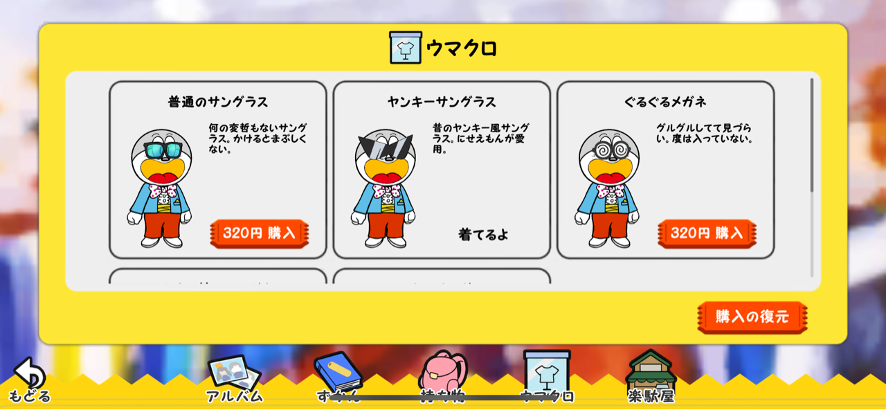 ・うまみちゃんにもうまえもんのアクセを装備できるので、グラサンうまみちゃん等も可能!