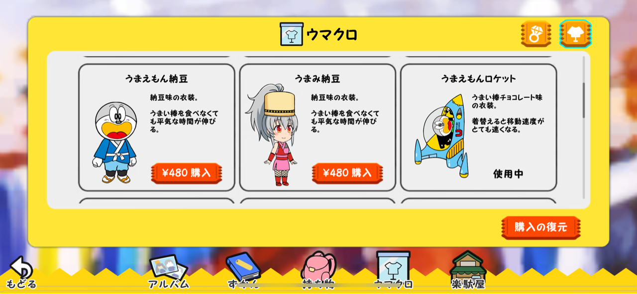 ⭐︎2024.05.20、サンタ衣装を上回る、「移動速度がとても速くなる」という「うまえもんロケット」「うまみロケット」がいつのまにか追加されていました!