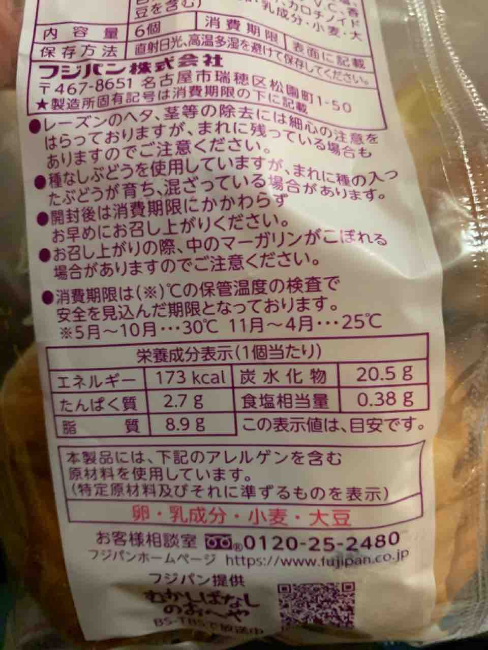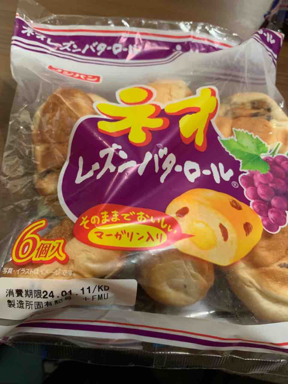 2023年7月頃に6個入りから5個入りになったフジパンのネオレーズンバターロールがこの度2024年1月初旬に6個入りにもどりましたよ!